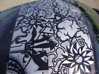 , Mario and others, all weaved together in a comprehensive abstraction. The car was then clear coated to permanently seal in the art work and was unveiled at the New Britain Museum of American Art in July of 2010. It is no longer a car, its an art car, nice work Ted